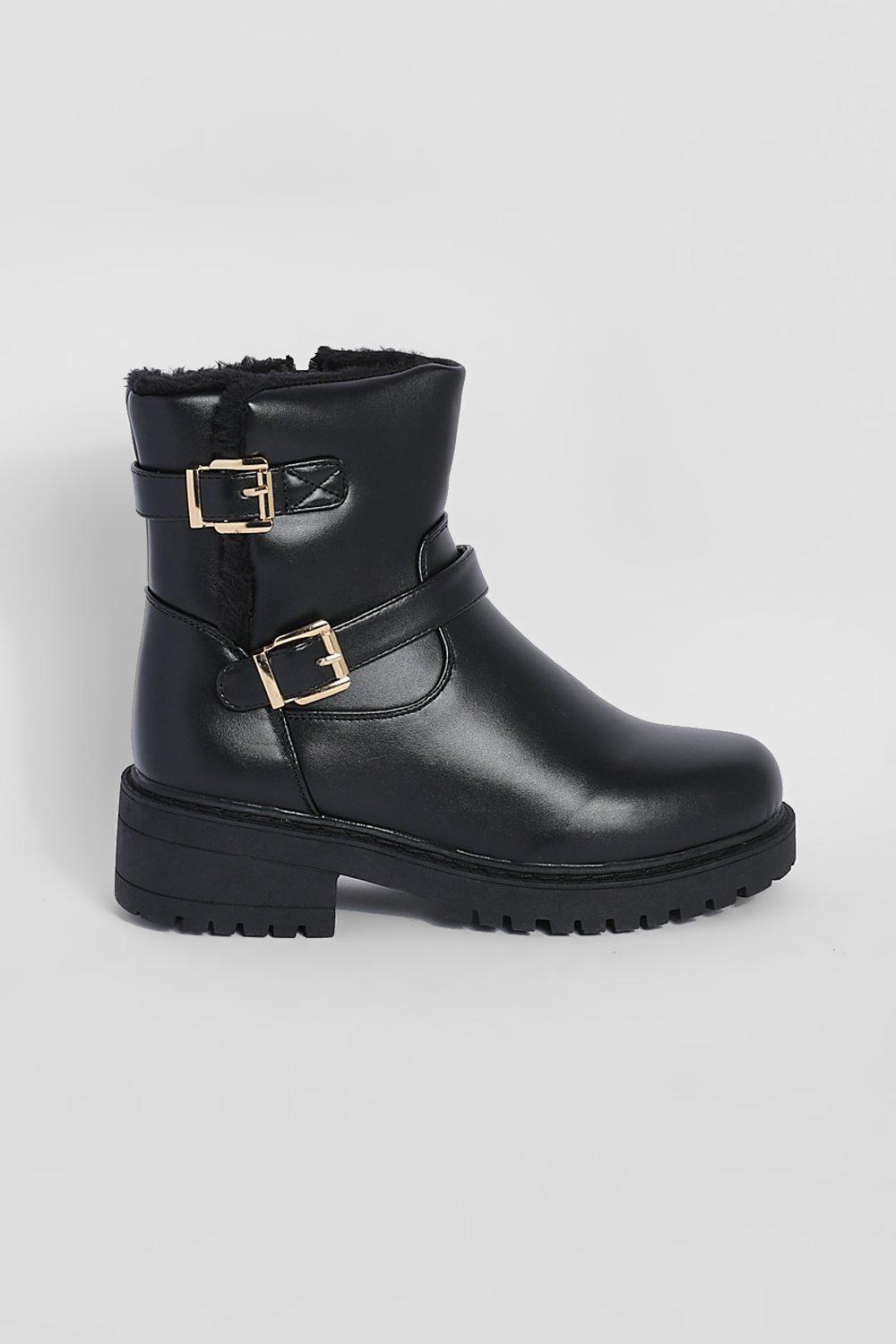 Wide Fit Leather Faux Fur Lined Ankle