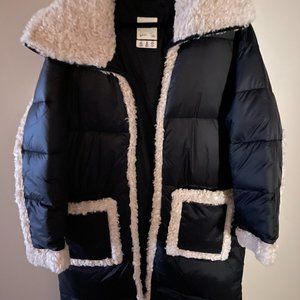 ABERCROMBIE u0026 FITCH Au0026F Ultra Long Diamond Quilted Sherpa-Lined Puffer / black padded faux shearling-fur winter jackets