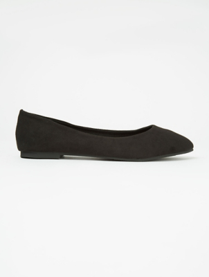 Black Suede Effect Pointed Ballet Shoes