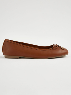 Tan Quilted Wide Fit Ballet Shoes