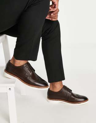 ASOS Design Brogue Shoe in Brown Leather on White Wedge Sole
